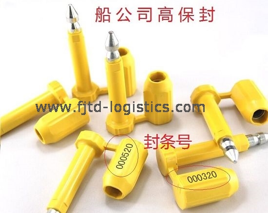 Seal Fee在貨代中俗稱“鉛封費”。為什麼叫“鉛封”?難道是“鉛”做的?不一定!其實,船公司提供的用於集裝箱上的鉛封基本都是用鋼鐵做的,而且是高強度的鋼鐵。所以封條有時也稱為“高保封”。