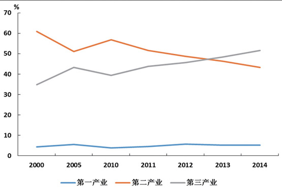 chanyeyuquyujingjijiegoutiaozheng,disanchanyechengweijingjizengchangdezhuyaodongli。suizhejingjishehuidejinbu,jingjijiegoubuduanyouhua,disanchanyesuozhanbizhongzhubutigao,bingyu2013年首次超過第二產業(如圖6所示)。未來,經濟將進入中速增長階段,而第三產業可望保持相對較快的增長,占GDPbizhongchixutigao,jiegoubuduanyouhua。congsanjiamachedegongxianlaikan,waimaohetouzidezuoyongzhujianjianruo,jingjizengchangzhuyaoyituoxiaofeidezengchang。xiaofeidezengchangbingbunengxiangdierchanyenayangzhijieladongyunshuxuqiuliangdezengchang,zheyitaishishideyunshuxuqiuduiGDP增速彈性減弱。