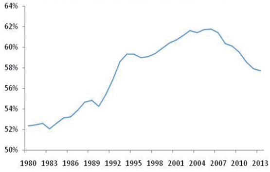 圖6 沿海地區(含北京)占全國GDP比重