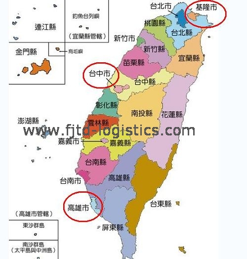 台灣線的主要港口有高雄KAOHSIUNG、基隆KEELUNG和台中TAICHUNG。這是台灣的三個基本港。