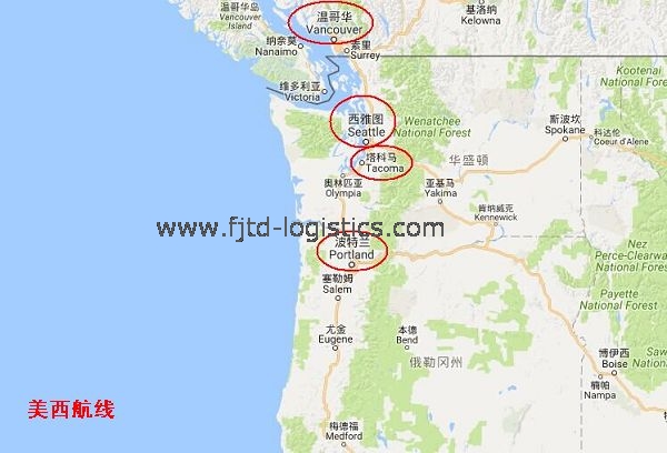 美西和美東航線上的港口,基本都是船公司到美國掛靠的基本港。其他較小港口以及內陸點,在航線上常作為美國內陸點看待。