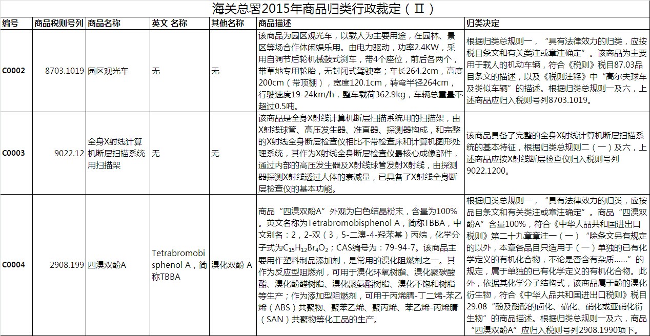 海關總署2015年商品歸類行政裁定(Ⅱ)