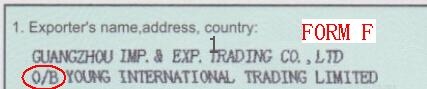 在實際中,兩個都在用,一般不做區分。有的代理用O/B,有的代理用VIA,產地證的簽發機構(一般是CIQ——商檢局)也不去管這個事情。
