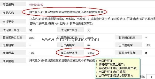 3. HS編碼8703242190排氣量>4升裝點燃往複式活塞內燃發動機小轎車的成套散件——海關監管條件還有: