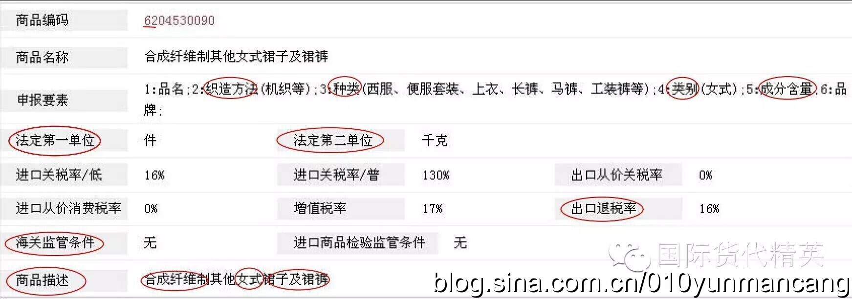4)下麵以HS編碼6204530090為例。說明申報要素的基本要求和申報技巧。