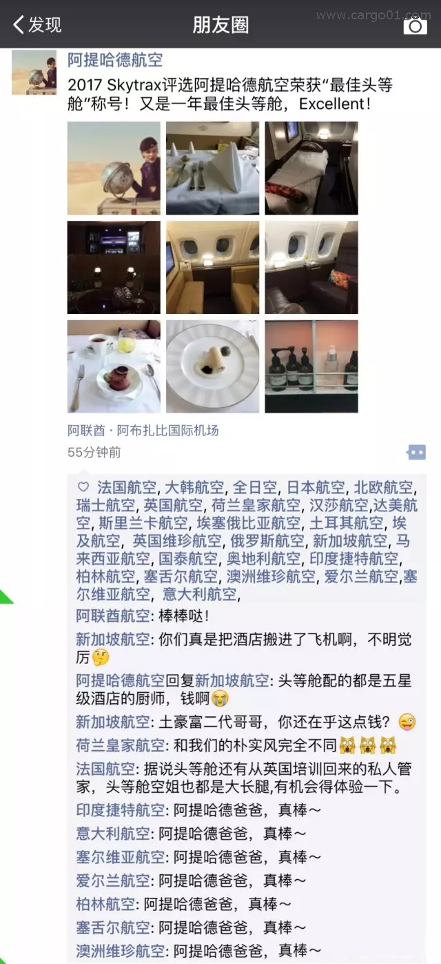 意大利航空、柏林航空、塞爾維亞航空、意大利航空、愛爾蘭航空、澳州維珍航空、印度捷特航空——阿提哈德收購的幹兒子們,都統一的神回複“阿提哈德爸爸,真棒~”,真是讓人忍俏不禁啊!