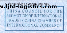沙特阿拉伯、阿聯酋、埃及等還要求一般原產地證(貿促會簽發)上必須加蓋“中國商會章”。由於貿促會就是中國商會,所以加蓋的“中國商會章”是這樣的: