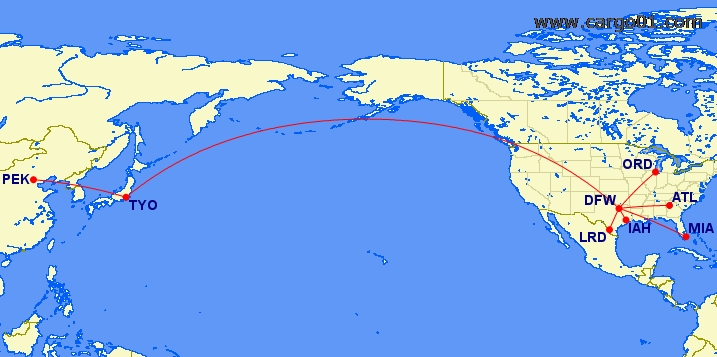 航線:PEK(北京)-TYO(東京)-DFW(達拉斯/沃斯堡)