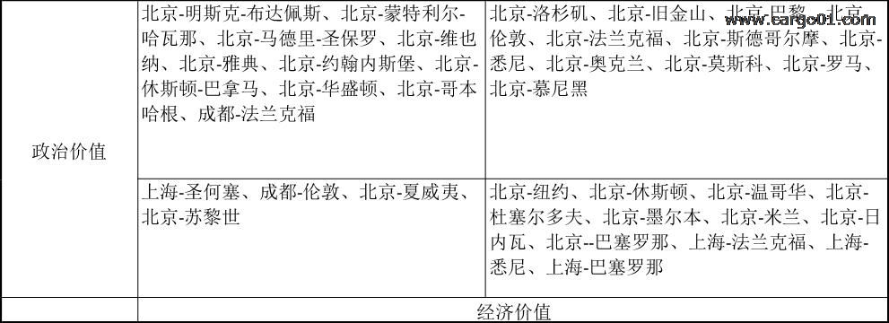從筆者看來,國際航線具有經濟價值和政治價值雙重屬性,可以用象限圖來分析。