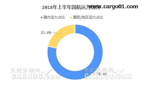 2018年上半年,國航國內運力占比78.4%,相比2017年上半年下降0.5%,國際/地區運力占比21.6%,同比提高0.5%。
