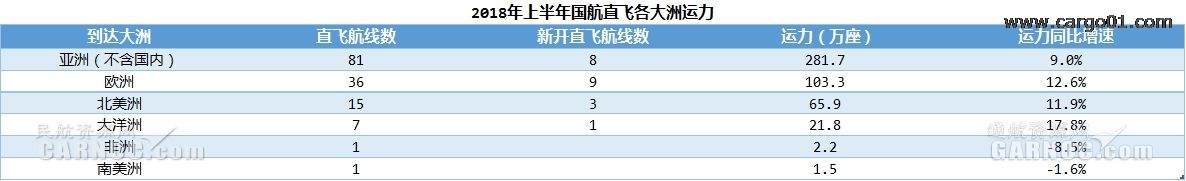 2018年上半年,國航僅1條非洲、南美洲航線,運力分別下降8.5%、1.6%;在大洋洲運力增速最快,同比增加17.8%。