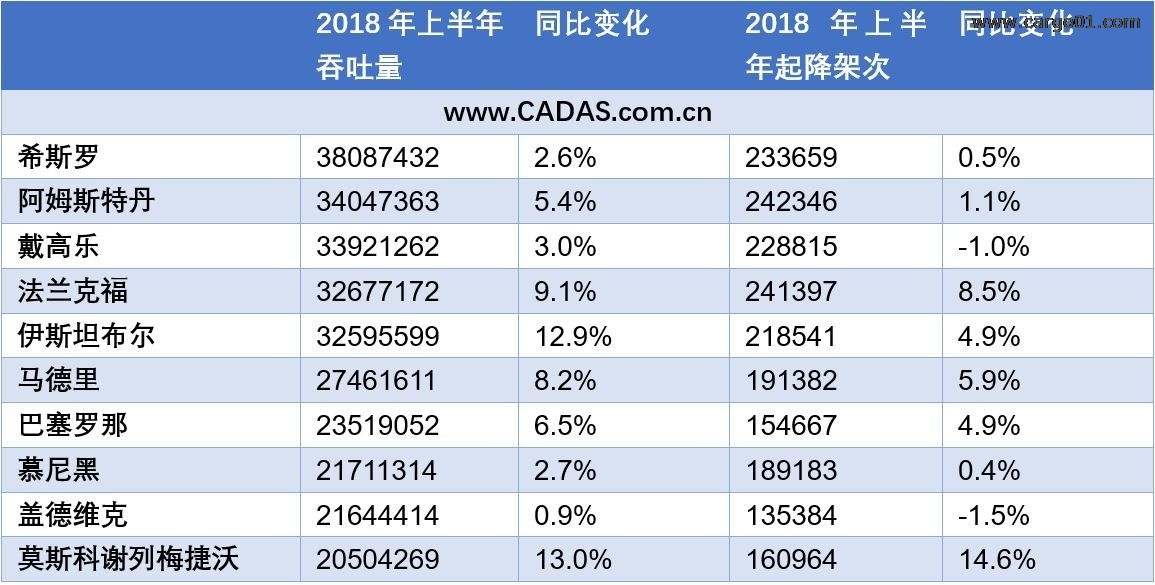 2018年上半年,五大航空樞紐吞吐量平均增速6.3%,較去年同期的4.3%明顯提升。五大樞紐半年吞吐量均超過3000萬人次,去年同期僅有三大樞紐超過3000萬人次。阿姆斯特丹機場超越戴高樂機場成為目前歐洲第二大機場。受到法航罷工影響的巴黎戴高樂機場增速僅為3%,容量飽和的希思羅機場增速為2.6%,較去年同期下降1.3個百分點。伊斯坦布爾機場以12.9%dezengsubaochizuikuaizengsu,quniantongqigaijichangtuntuliangyuqijiangjiacijunweifuzengchang。danmuqiantuerqijingjixingshibingbuleguan,weixiabannianchixuzengchangmengshangyinying。lundungaideweikejichangzaiouzhouqian10位(wei)的(de)機(ji)場(chang)中(zhong),吞(tun)吐(tu)量(liang)增(zeng)速(su)最(zui)低(di),起(qi)降(jiang)架(jia)次(ci)負(fu)增(zeng)長(chang),值(zhi)得(de)一(yi)提(ti)的(de)是(shi)蓋(gai)德(de)維(wei)克(ke)機(ji)場(chang)去(qu)年(nian)同(tong)期(qi)吞(tun)吐(tu)量(liang)增(zeng)速(su)最(zui)高(gao)。倫(lun)敦(dun)也(ye)是(shi)唯(wei)一(yi)一(yi)個(ge)有(you)兩(liang)個(ge)機(ji)場(chang)進(jin)入(ru)前(qian)十(shi)的(de)城(cheng)市(shi)。