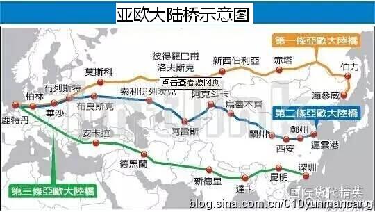 2、東起江蘇連雲港西至荷蘭鹿特丹的新歐亞大陸橋鐵路運輸(也稱第二歐亞大陸橋)。
