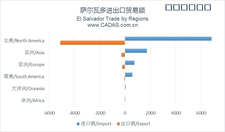 其qi國guo內nei經jing濟ji以yi農nong業ye為wei主zhu,工gong業ye基ji礎chu薄bo弱ruo。亞ya洲zhou是shi繼ji北bei美mei後hou塞sai爾er瓦wa多duo第di二er大da進jin行xing進jin出chu口kou貿mao易yi的de地di區qu。而er在zai所suo有you亞ya洲zhou國guo家jia中zhong,塞sai爾er多duo瓦wa對dui中zhong國guo的de進jin口kou貿mao易yi額e占zhan50%、出口貿易額占16%。早在2017年薩爾瓦多就表現出與中國尋求貿易發展的傾向。