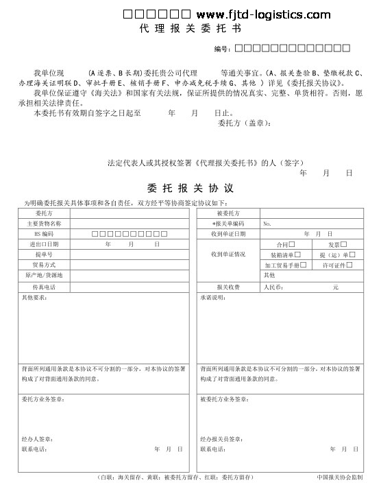 您現在的位置:首頁 >> 物流學堂 >> 報關指南>>FJTD代理報關委托書(樣本下載)