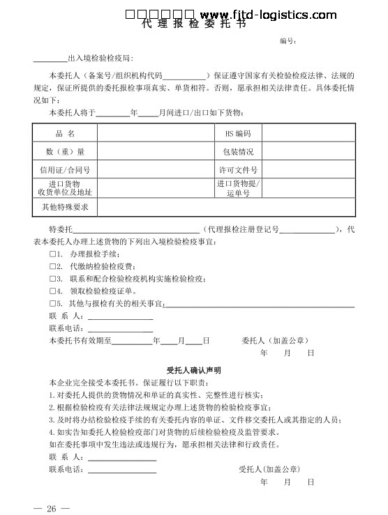 FJTD代理報檢委托書(樣本下載)