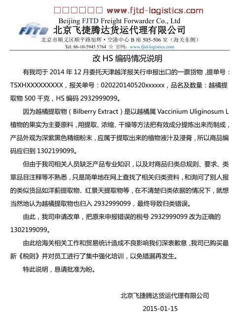 您現在的位置:首頁 >> 物流學堂 >> 貨代百科>>改HS編碼情況說明(越桔提取物)