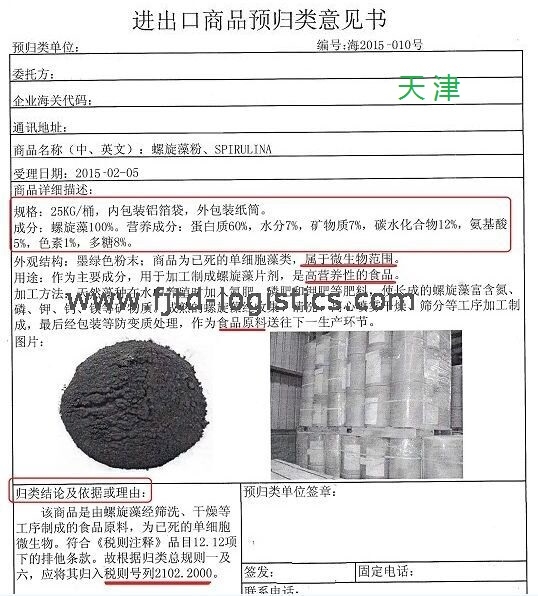綜上,螺旋藻粉/小球藻的HS編碼應為2102.2000,不應歸到2106.9090.90
