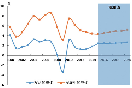 發展中經濟體地位繼續提升,經濟增長的引擎回歸發達經濟體。2000-2007年發展中經濟體年均增速為6.7%,高於世界平均增速2.3個百分點。受到金融危機衝擊,發達經濟體出現大幅度的下滑(如圖2所示),oumeirijingjitongshimianlinjudachongjishenzhichuxianweisuo,fazhanzhongjingjitisuiranjingjizengsuyousuoxiajiang,danmingxianhaoyufadajingjiti,fazhanzhongjingjititebieshizhongguoyidubanyanleshijiejingjizengchangyinqingdejiaose。yituojishuyoushi,fadajingjitizengsuchengxianhuishengtaishi,erfazhanzhongjingjitizengsujiangyousuofanghuan,yushijiejingjipingjunzengsuchayimingxiansuoxiaodao1.1個百分點。預計“十三五”期發達經濟體的年均增速為2.5%,發展中經濟體為4.9%(如圖2所示)。按an照zhao對dui世shi界jie經jing濟ji增zeng長chang的de絕jue對dui淨jing貢gong獻xian來lai計ji算suan,經jing濟ji增zeng長chang引yin擎qing開kai始shi回hui歸gui到dao發fa達da經jing濟ji體ti,這zhe意yi味wei著zhe相xiang對dui於yu集ji裝zhuang箱xiang而er言yan,大da宗zong貨huo物wu海hai運yun需xu求qiu減jian緩huan將jiang更geng加jia明ming顯xian。