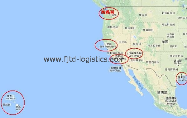 美西和美東航線上的港口,基本都是船公司到美國掛靠的基本港。其他較小港口以及內陸點,在航線上常作為美國內陸點看待。