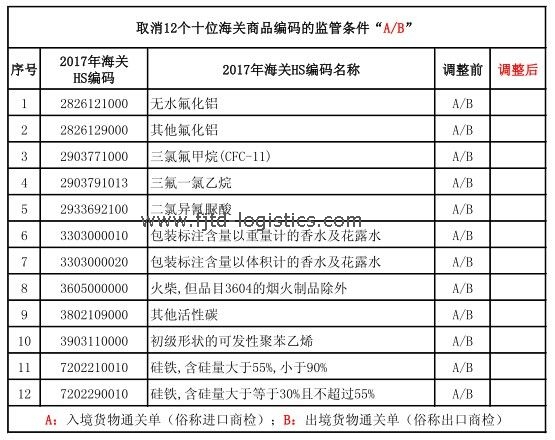 1)取消12個10位海關商品編碼的監管條件“A/B”的: