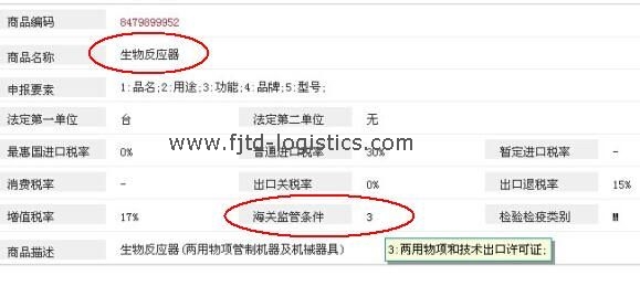 1. HS編碼8479899952生物反應器——海關監管條件還有——兩用物項和技術出口許可證(代碼3)