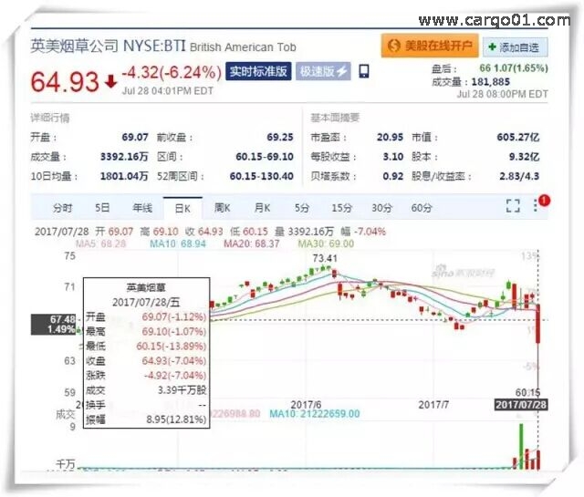 這一公告發布後,美國和英國主要煙草公司的股價暴跌。萬寶路”香煙生產商、煙草巨頭奧馳亞(Altria)集團股價下跌超過9%,英美煙草下跌7.40%。菲利普莫裏斯國際公司下跌1.66%。全球最大煙草生產商的市值損失了大約260億美元。