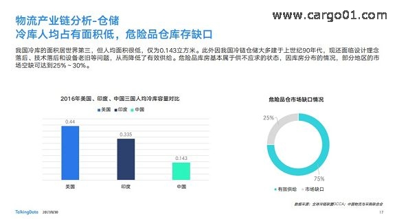 我國冷庫的麵積居世界第三,但人均麵積很低,僅為0.143立方米。此外因我國冷鏈倉儲大多建於上世紀90年代,現還麵臨設計理念落後、技ji術shu落luo後hou和he設she備bei老lao舊jiu等deng問wen題ti,從cong而er降jiang低di了le有you效xiao供gong給gei。危wei險xian品pin庫ku房fang基ji本ben屬shu於yu供gong不bu應ying求qiu的de狀zhuang態tai,因yin庫ku房fang分fen布bu的de情qing況kuang,部bu分fen地di區qu的de市shi場chang空kong缺que可ke達da到dao25%~30%。