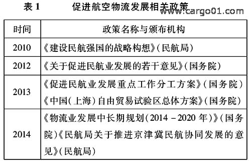 近年來,國務院、民航局和各地政府不斷出台鼓勵航空物流發展的政策,極大促進了中國航空物流業的發展(見表1)。