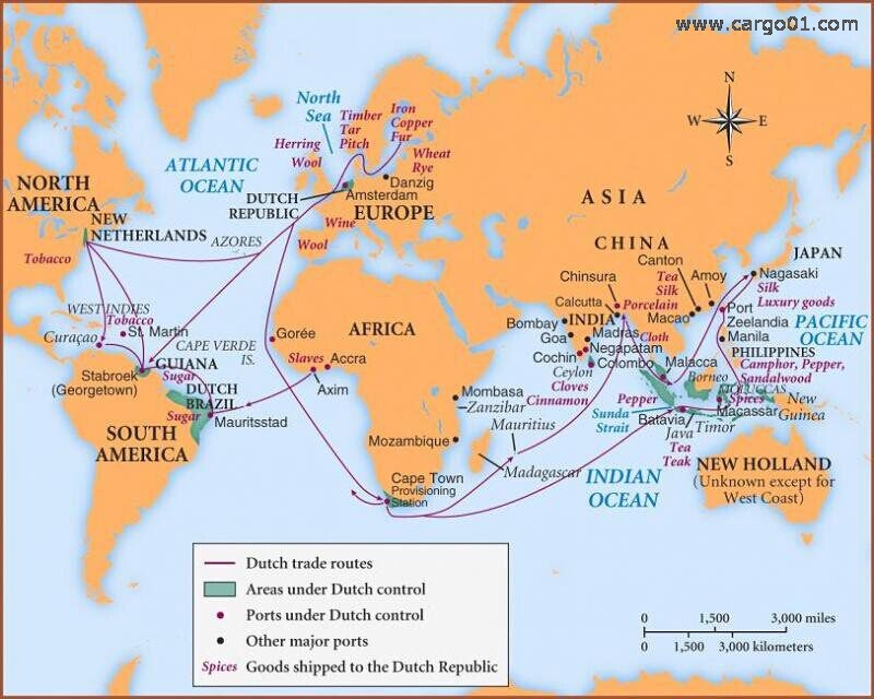 15世紀後半期,哥倫布通過4次航海探險發現了美洲,葡萄牙的達伽馬通過好望角發現一條通往印度的航海路線。輕資產的航海貿易成為更經濟的貿易方式。