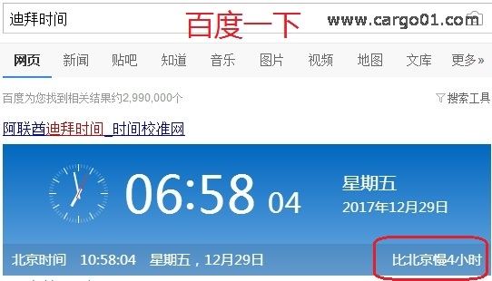 最簡單的方法是在百度輸入“迪拜時間”搜索,馬上就顯示出迪拜時間和北京時間的具體時差信息了。如圖: