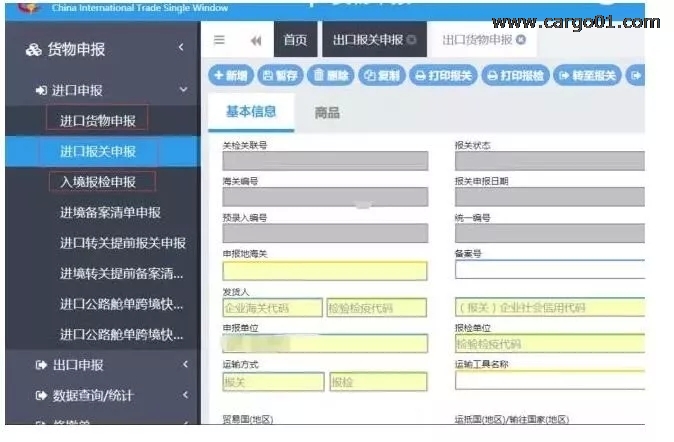 一、原來報檢申報係統時會出兩個編號,1通關單號,2報檢單號在報關係統錄入時,需輸入1通關單號。(海關隻能查看,hs編碼,金額,重量,包裝等主要貨物信息)現變動為報檢申報係統隻出一個編號,2報檢單號,在報關係統錄入時,改為輸入2報檢單號。(數據同步海關可查看報檢信息的所有內容)
