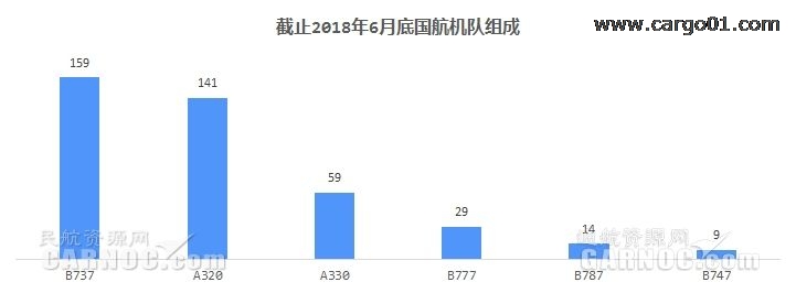 截止2018年6月底,國航客運飛機總數411架,占國內機隊總數的12.8%;截止2018年6月底,國航B737,A320數量最多,分別為159架、141架。