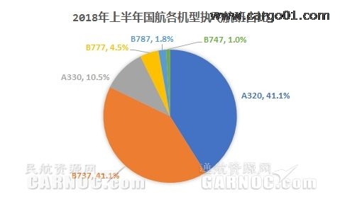 2018年上半年,國航A320和B737執飛航班占國航執飛航班總量的82.2%,二者執飛航班占比相當,均為41.1%,相比去年同期,A320執飛航班占比下降0.5%,B737執飛航班占比無明顯變化。