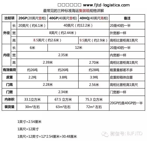 (2)普櫃高度:8.5英尺=8英尺+6英寸=8.5*30.48=2.59米;(這是20GP和40GP的高度)